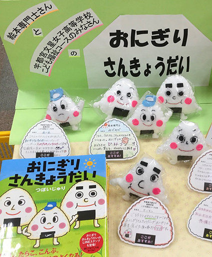 栃木県の宇都宮文星女子高等学校・こども福祉コース3年生と2年生の皆さんが、絵本『おにぎりさんきょうだい』のマスコットとPOPを作ってくださりました!いろんな書店様で展示中!おにぎりの輪が広がっています!